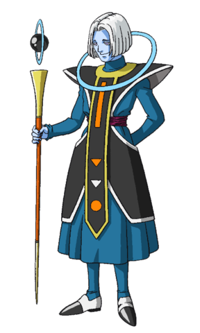 Está irritado y harto de su Kaio-shin y Dios de la Destrucción mediocres. Es un genio que siente las cosas de manera desapasionada.[1] Se le muestra molesto ante la actitud despreocupada y torpe del Trío del Peligro sobre mencionarle a los habitantes de un planeta sobre la destrucción del Universo 9, lo que terminó causando revueltas.