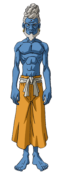Es un individuo humanoide musculoso de piel azul. Su cabello es de color blanco y tiene una barba bastante poblada del mismo color. Usa pantalones de yogi de color amarillo.